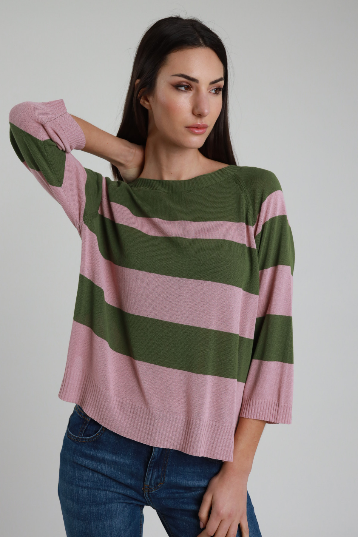 Maglia A Righe Larghe, Scollo Barchetta e Maniche 3/4.