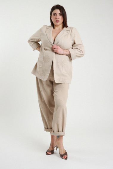 Giacca Monopetto in Bull Denim in Sangallo con Tasche Applicate - Linea Curvy Susy Star.