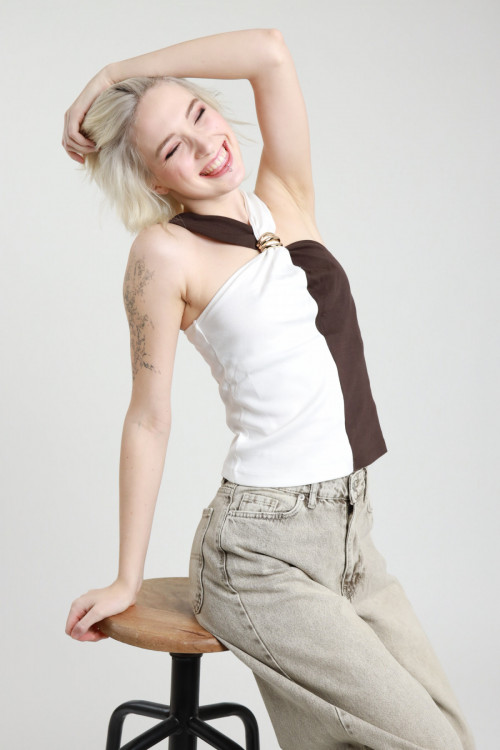 Top Crop con Incrocio sul Fronte e Dettaglio Accessorio.