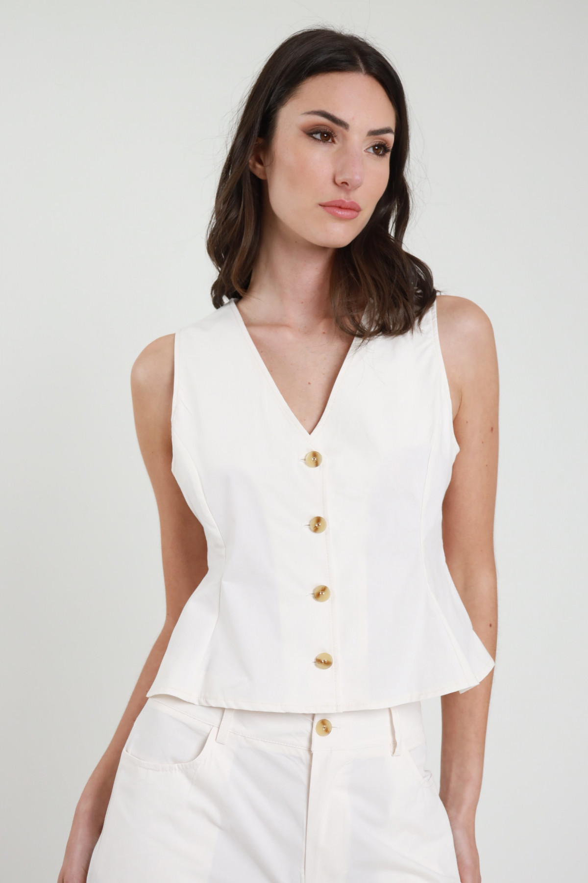 Gilet in Cotone, Sfiancato e Svasato per Valorizzare la vita, Chiusura Bottoni.
