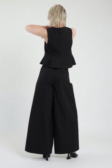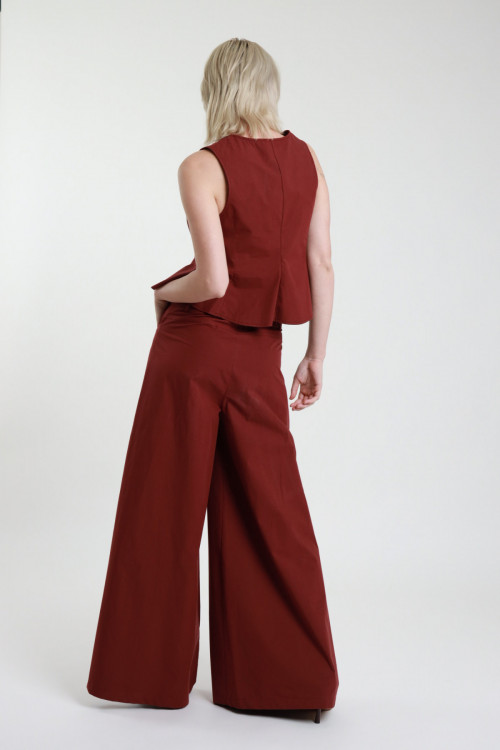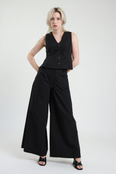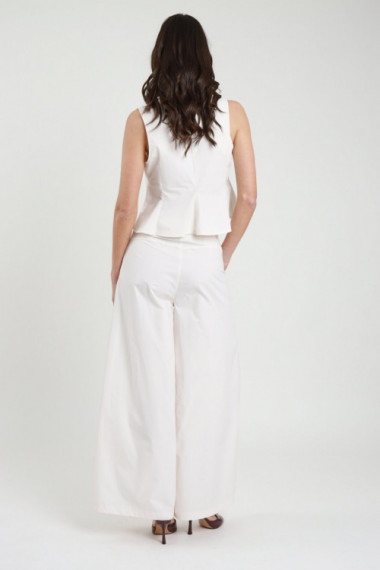 Pantalone in Cotone a Palazzo con Gamba Molto Ampia, 2 Tasche, Chiusura Bottone e Zip. 100%co