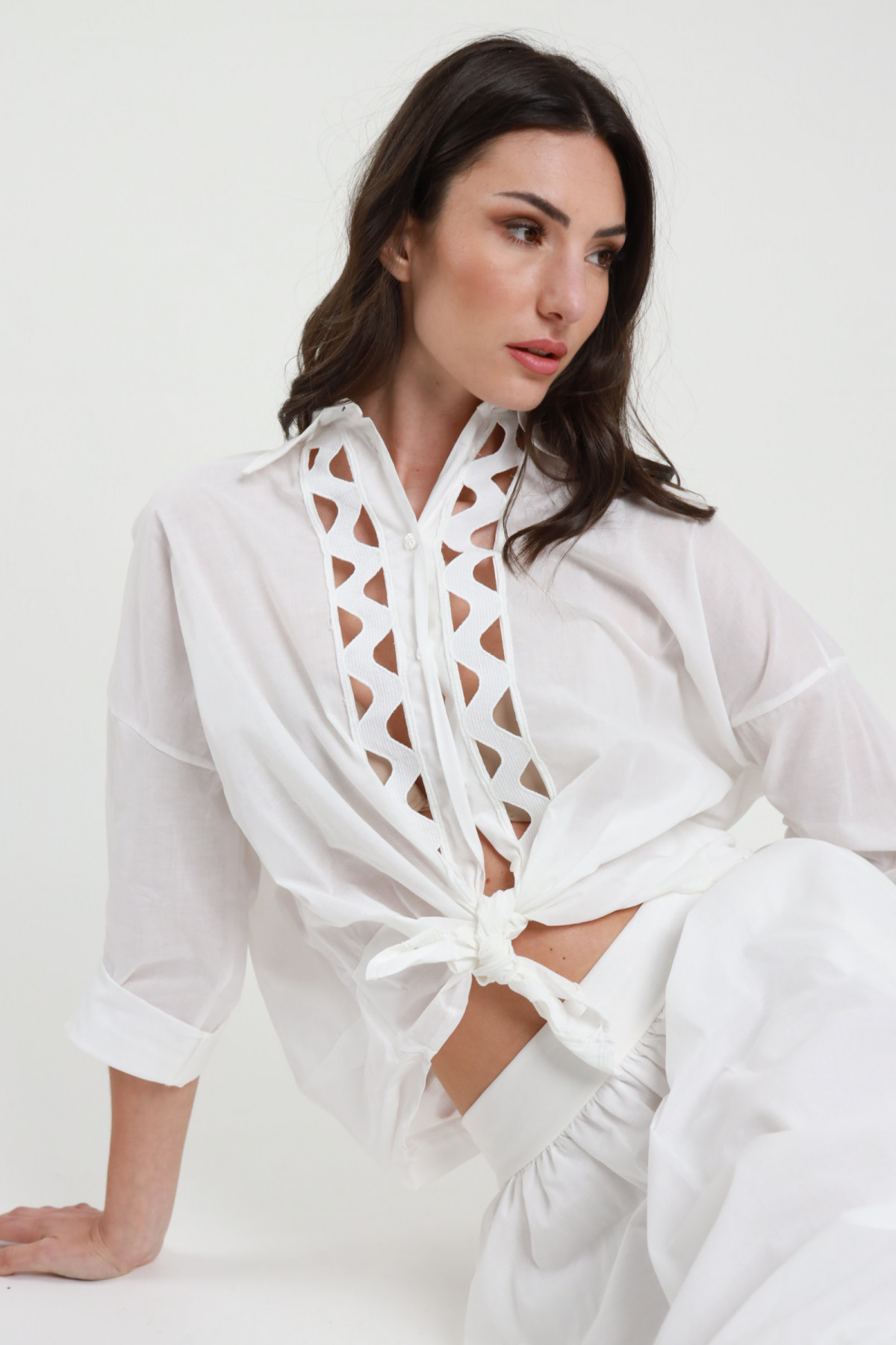 Camicia in Cotone con Dettaglio Passamaneria sul Fronte e Nodo sul Fondo.