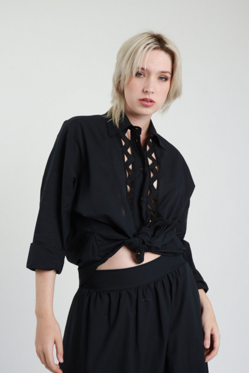 Camicia in Cotone con Dettaglio Passamaneria sul Fronte e Nodo sul Fondo.