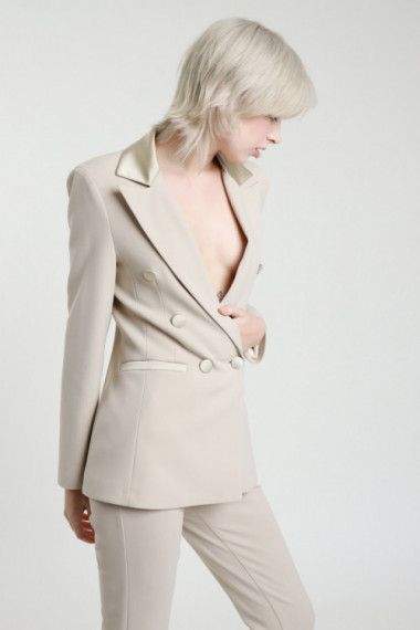 Completo Composto da Blazer Doppiopetto con Rever, Bottoni e Taschine Lucide + Pantalone a Zampetta con Chiusura Zip e Bottone.