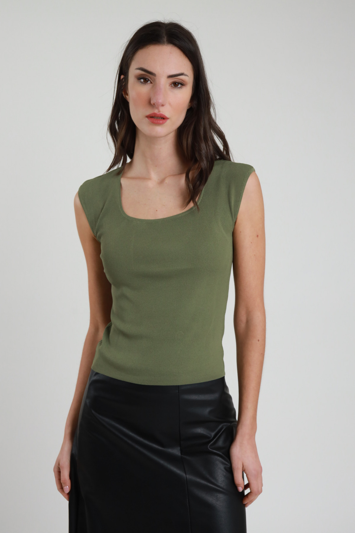 Canotta Scollo Quadrato, Tessuto Stretch, Spalla Larga, Fit Slim.