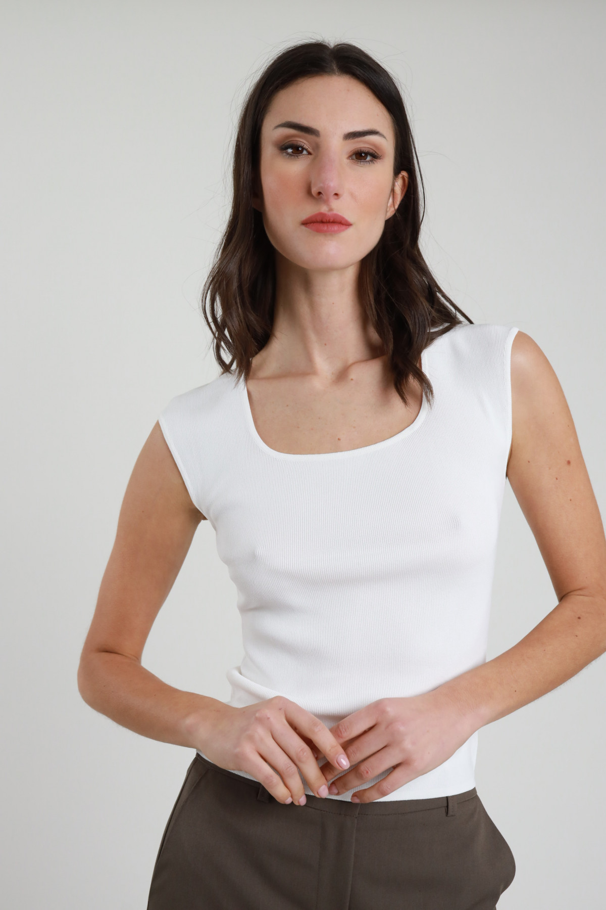 Canotta Scollo Quadrato, Tessuto Stretch, Spalla Larga, Fit Slim.