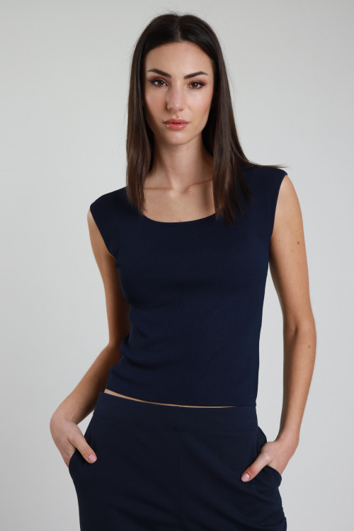 Canotta in Cotone Elasticizzato a Costine con Scollo a Bottoni Gioiello.