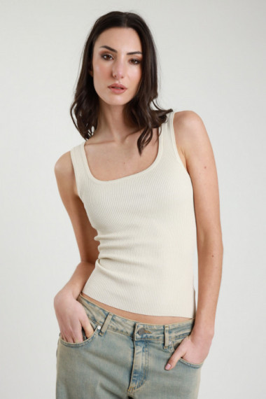 Canotta Elasticizzata a Costine con Scollo Quadrato. 70%vi 25%co 5%ea