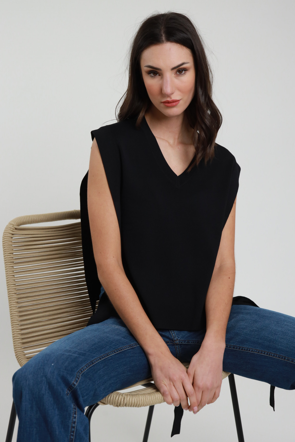 Gilet in Maglia con Lacci, Scollo V, Bordo Laterale Scollato.
