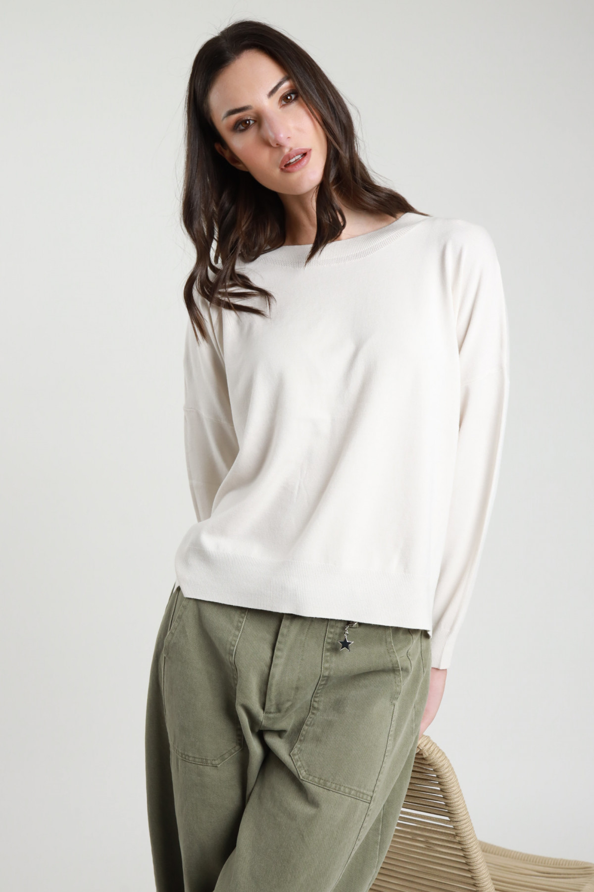 Maglia in Viscosa Scollo a Barca con Costine. 72%vi 28%pl
