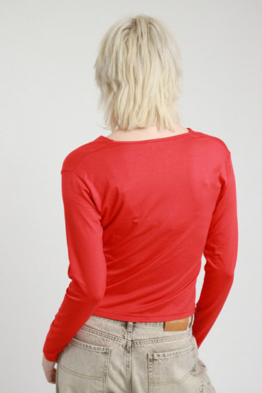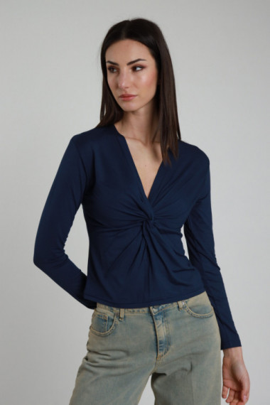 Maglia A Maniche Lunghe Stretch Con Nodo Sul Fronte e Scollo A V, Slim Fit.