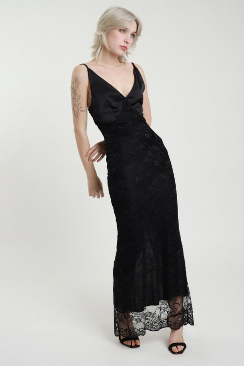 Abito Lungo in Raso e Pizzo