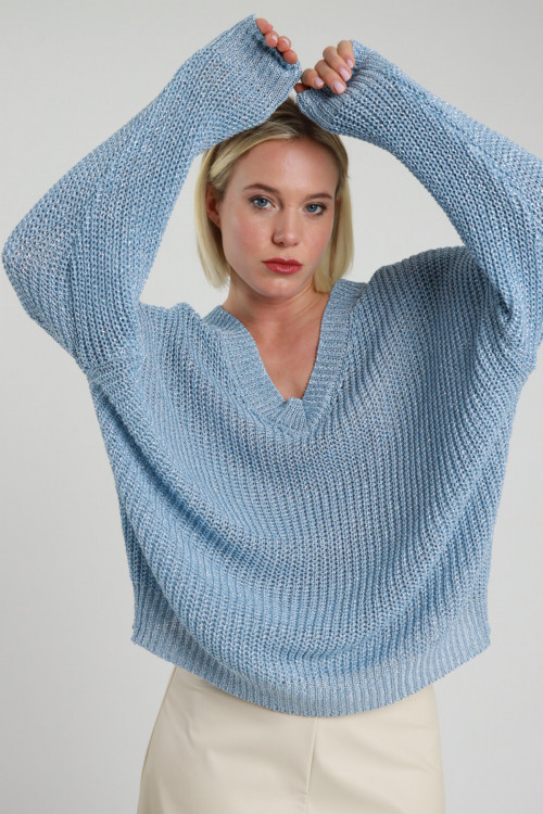 Pull con Scollo a V in Viscosa Lurex.