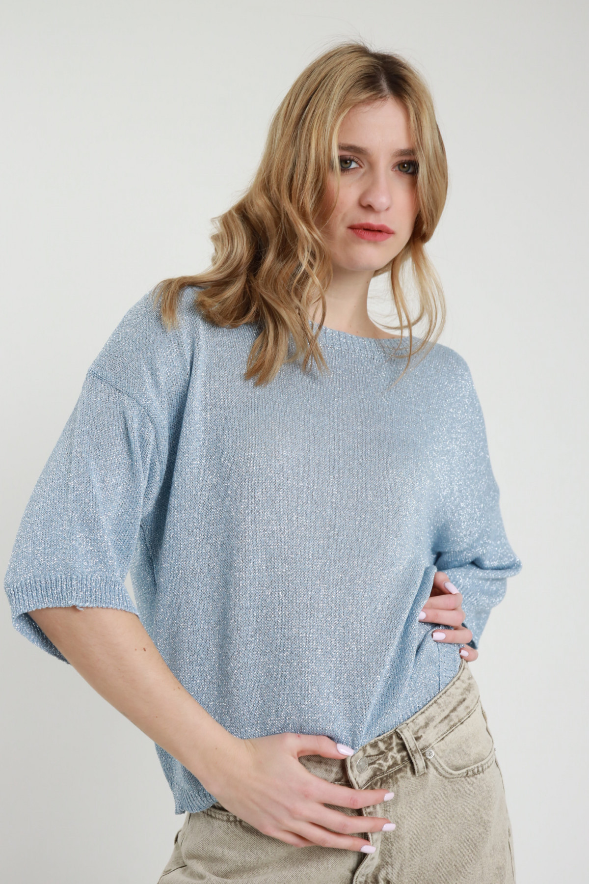 Maglia Over Maniche a 3/4 in Lurex.
