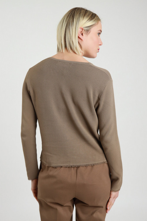 Cardigan Girocollo Con Bottoni Perle, Sfondo Sfrangiato, Regular Fit.
