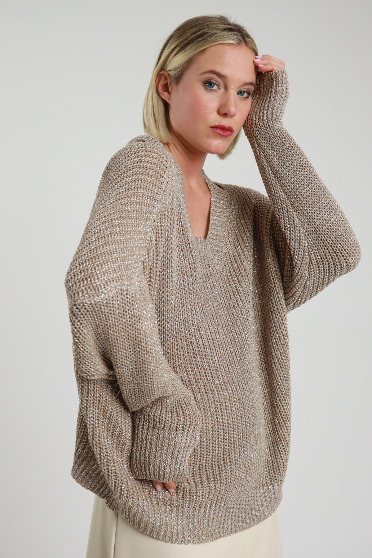 Pull con Scollo a V con Cut Out in Viscosa con Lurex.