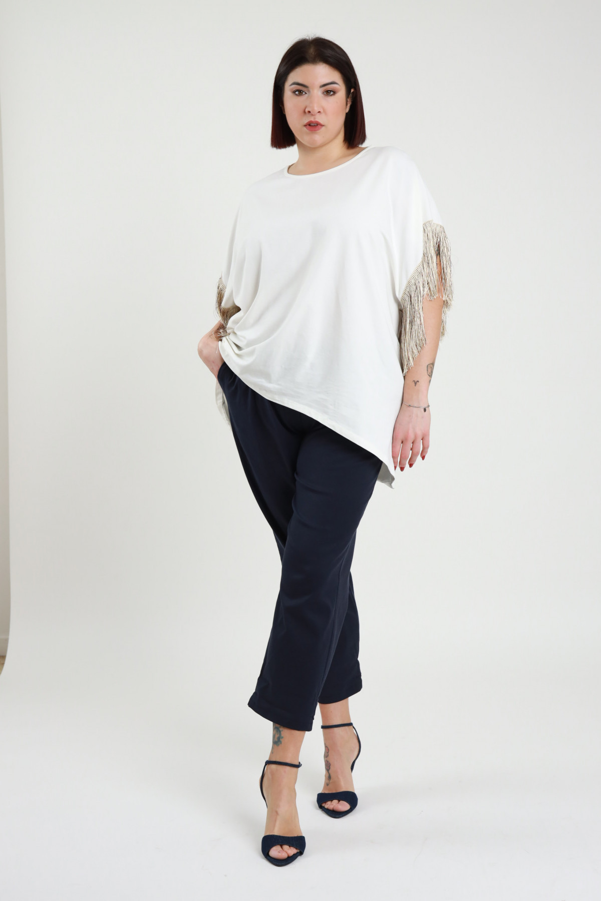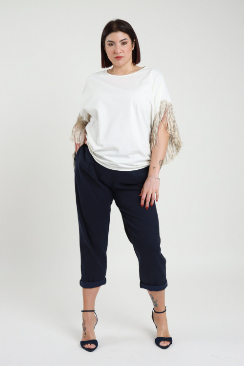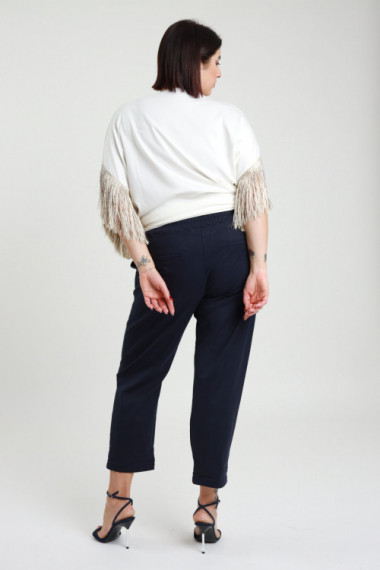 Pantalone Dritto Elasticizzato con Elastico in Vita e Passanti - Linea Curvy Susy Star.