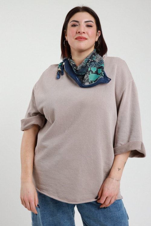 Felpa Over Con Maniche Tre Quarti Risvoltate. Accessoriate Con Foulard - Linea Curvy Susy Star.