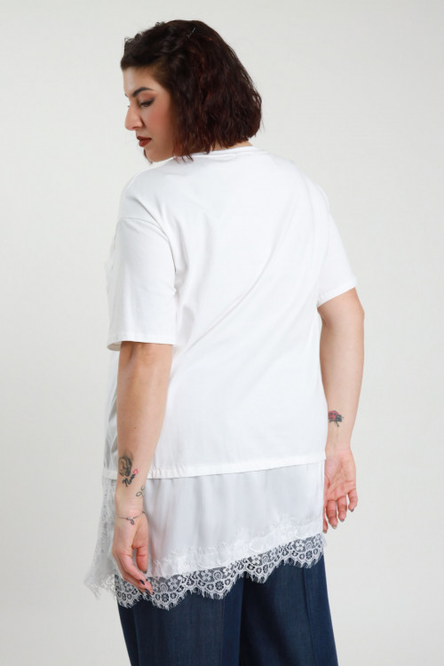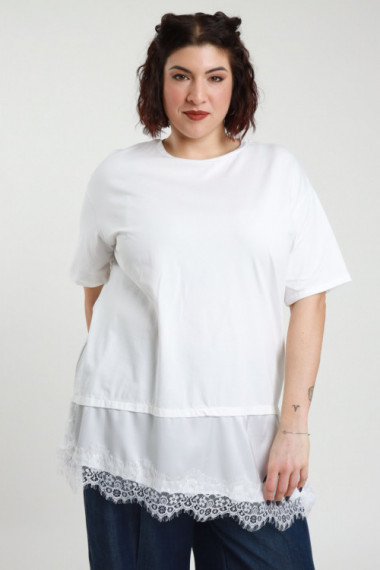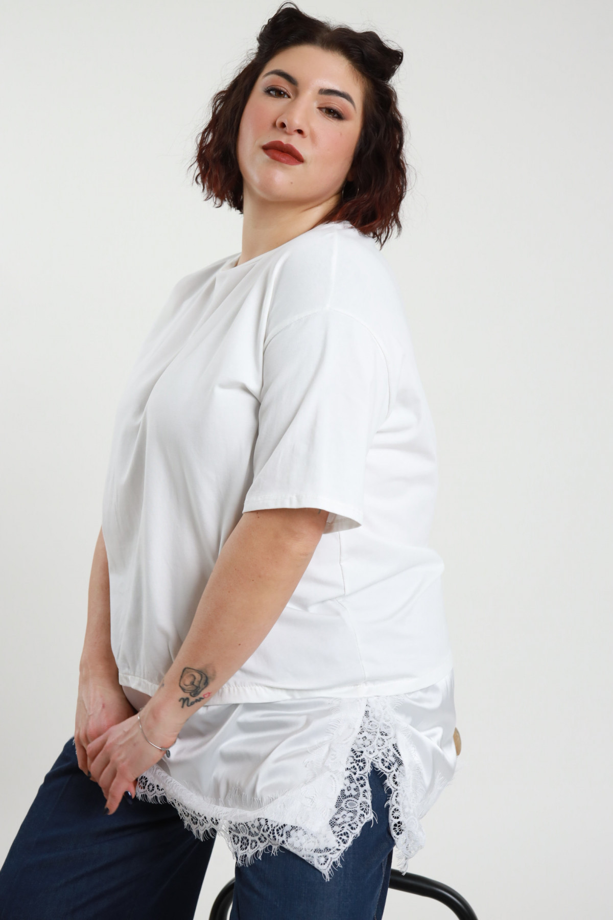 Maxi T-shirt con Sottoveste Asimmetrica con Pizzo - Linea Curvy Susy Star.