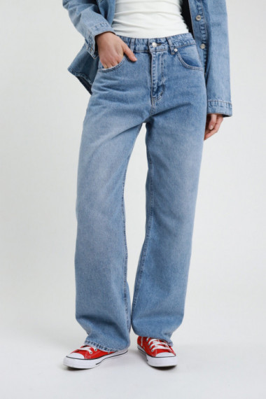 Jeans Wide Leg a Vita Alta con Sbiaditure.