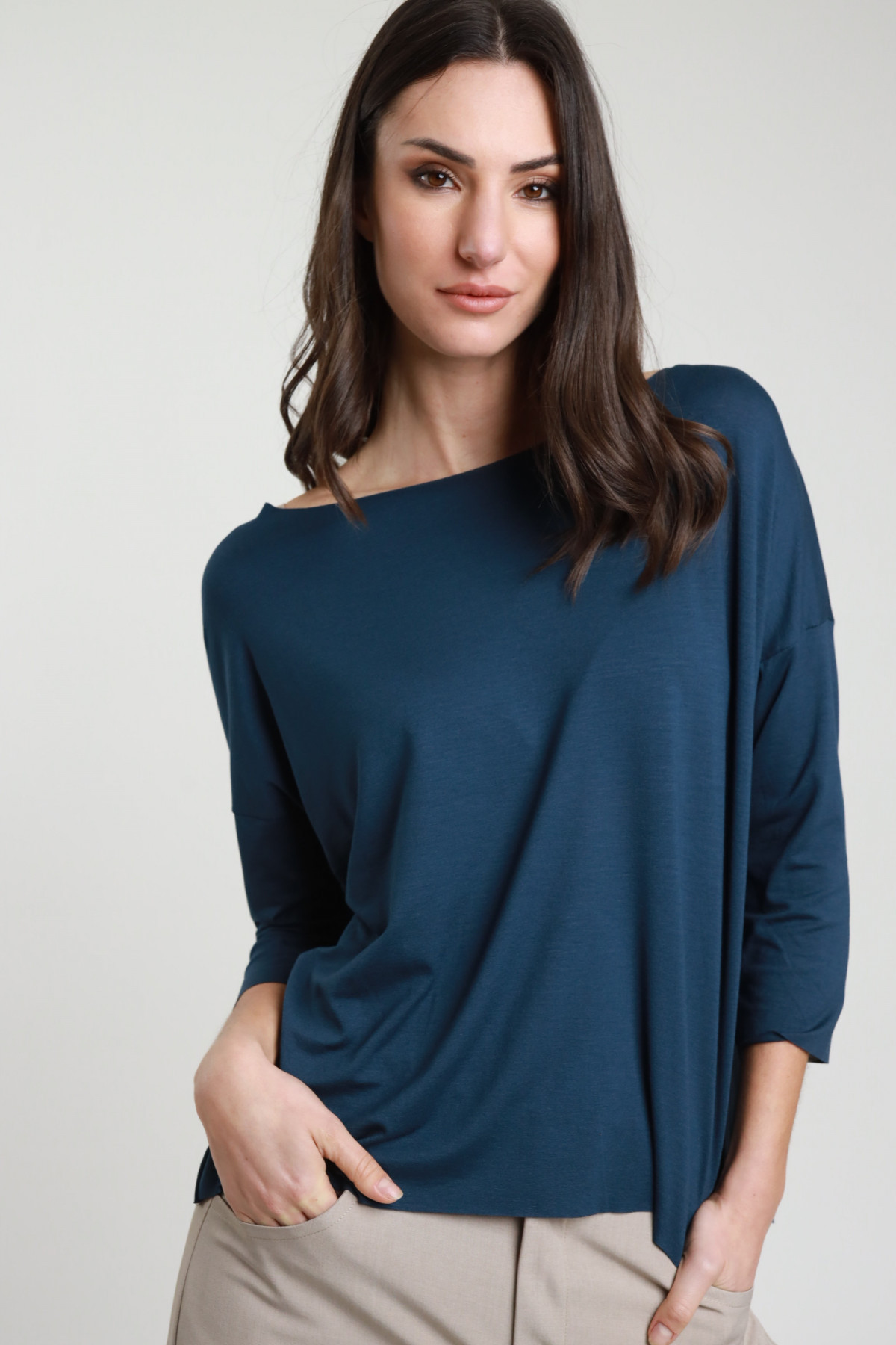 T-Shirt Kimono con Maniche a 3/4 in Viscosa Elasticizzata.