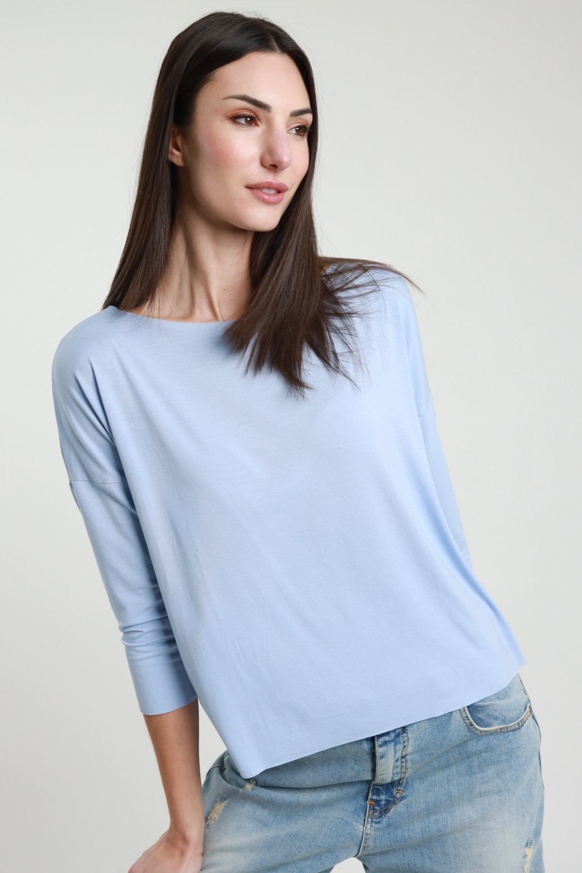 T-Shirt Kimono con Maniche a 3/4 in Viscosa Elasticizzata.