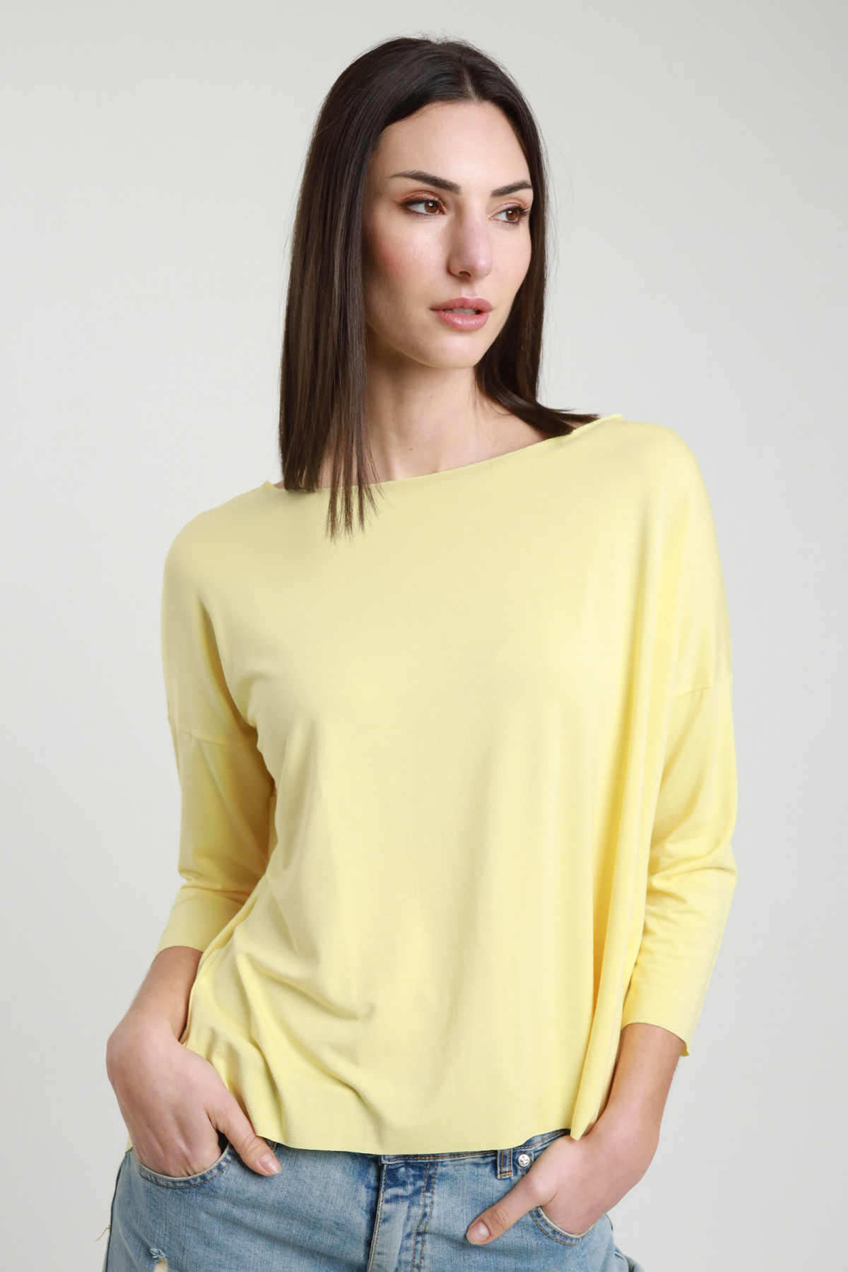 T-Shirt Kimono con Maniche a 3/4 in Viscosa Elasticizzata.