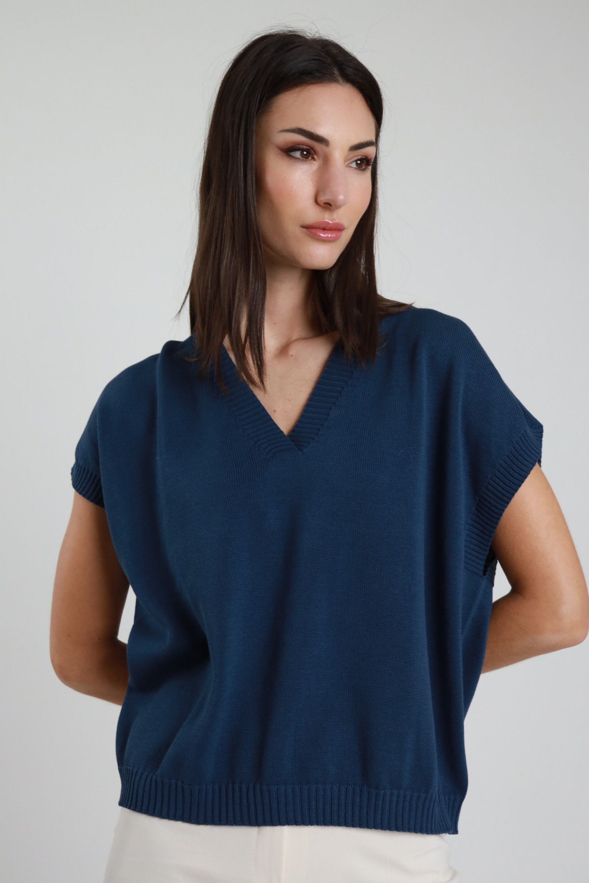 Gilet In Maglia, Scollo V, Spalla Larga, Fit Oversize.