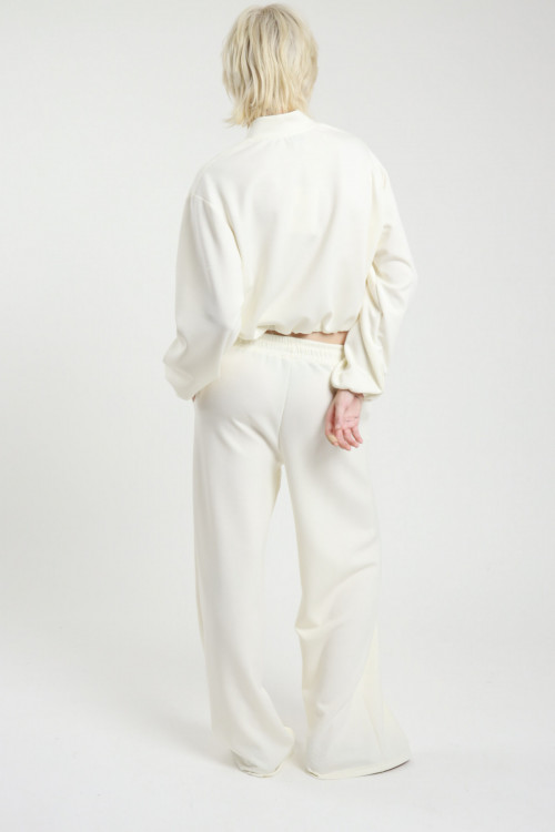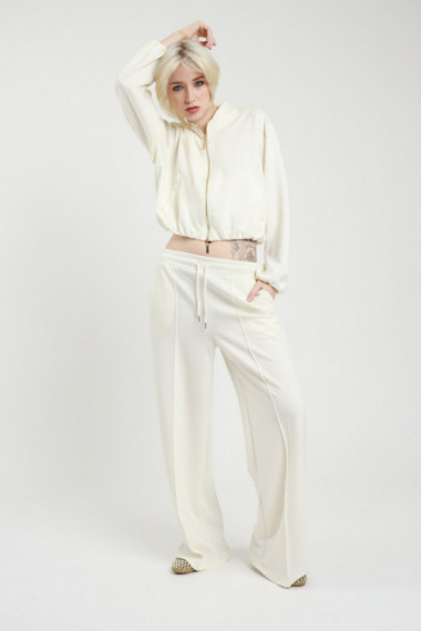 Completo in Felpa con Giacca Bomber con Zip Dorata + Pantalone a Palazzo con Elastico e Coulisse in Vita.