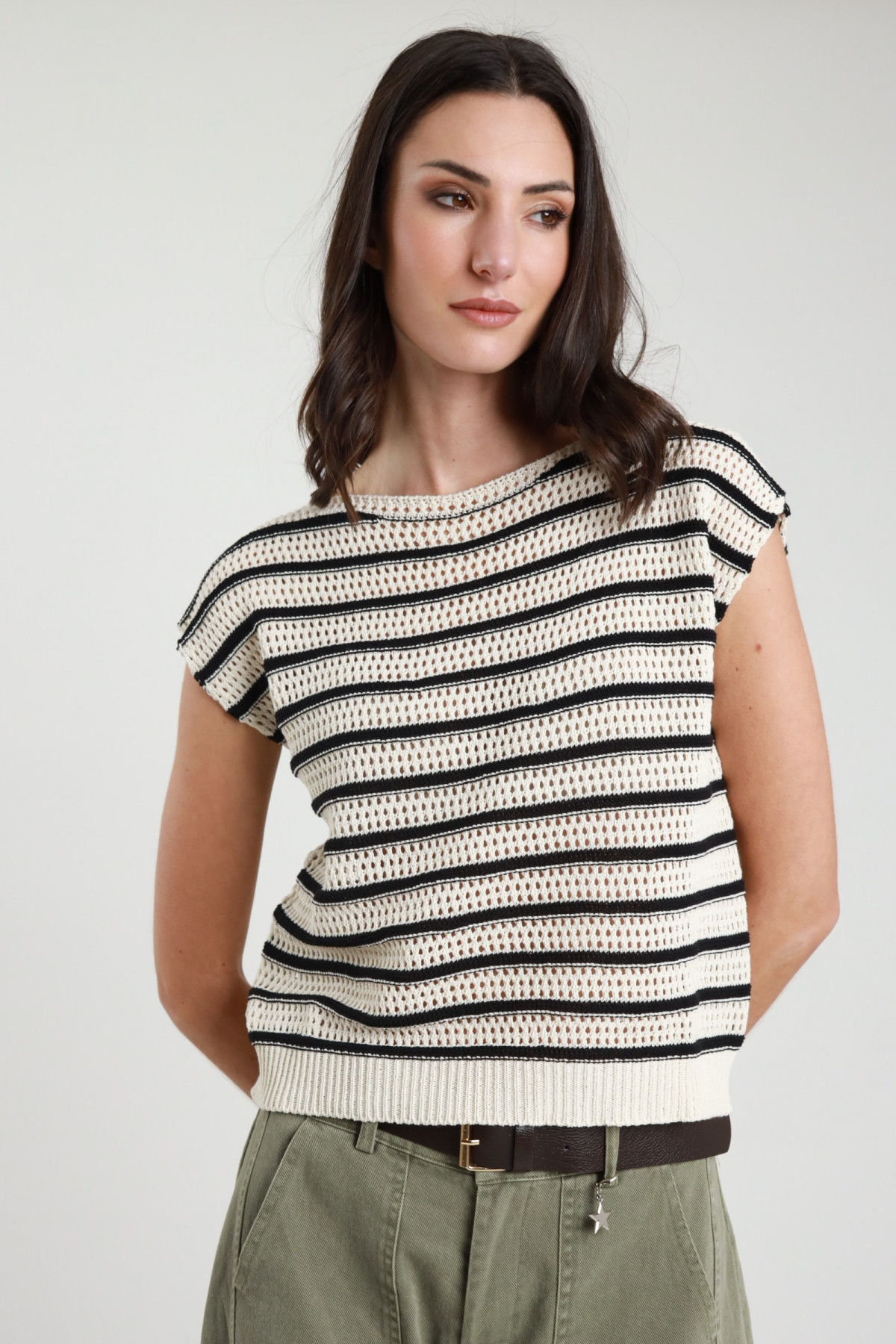 Gilet Over in Maglia Traforata a Righe.