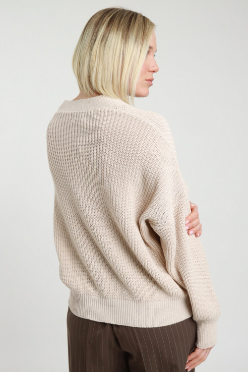 Cardigan in Maglia di Cotone a Costa Inglese, Chiusura Bottoni.