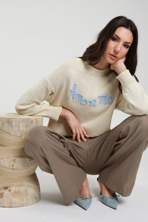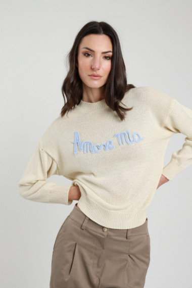 Pull Girocollo in Maglia di Cotone con Scritta "Amore Mio".