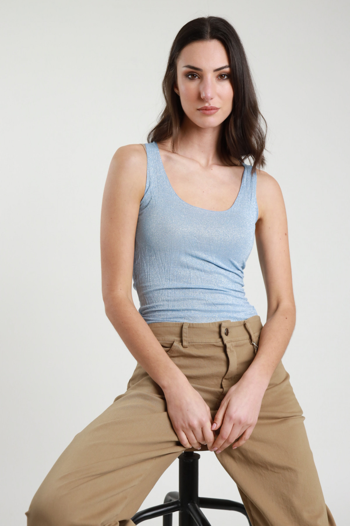 Canotta Elasticizzata in Lurex. 70%vi 13%pl 11%pa 6%ea