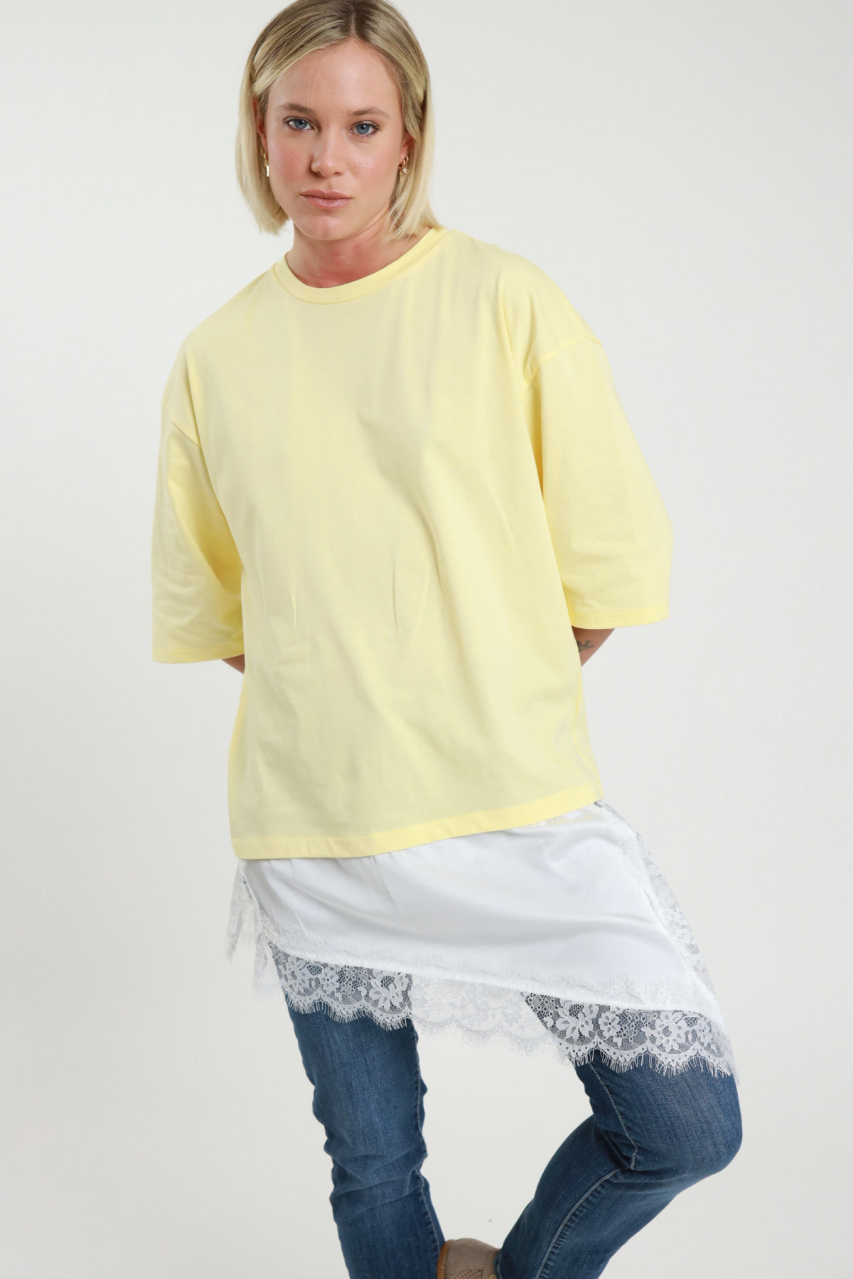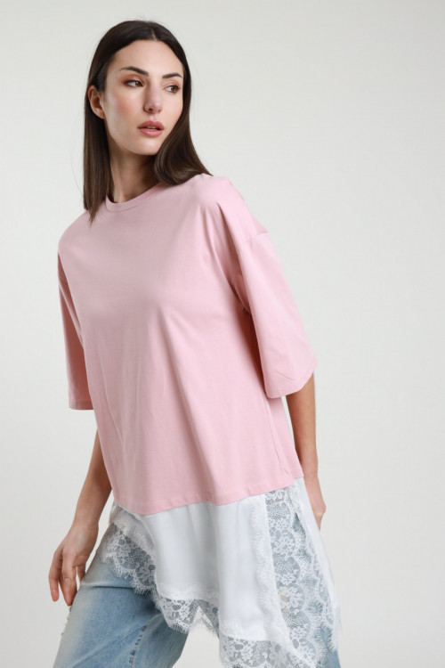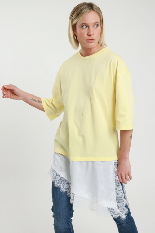 Maglia Over con Sottoveste con Pizzo