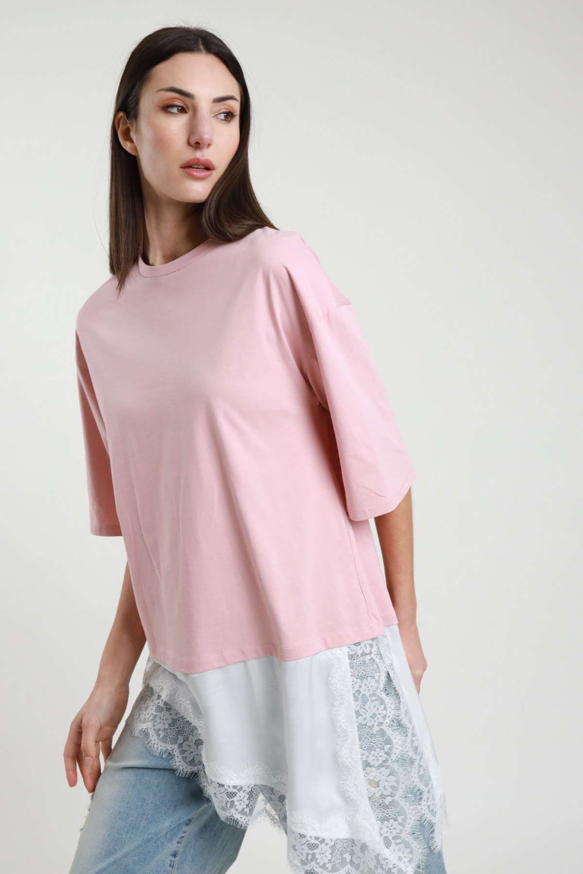 T-Shirt Over Mezze Maniche, Sottoveste con Pizzo Asimmetrica.