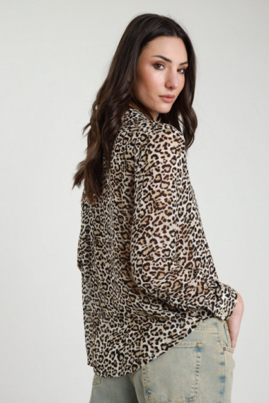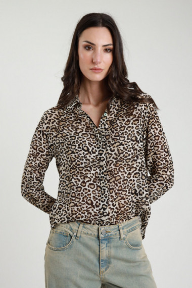 Camicia in Viscosa in Fantasia Animalier Maculata.