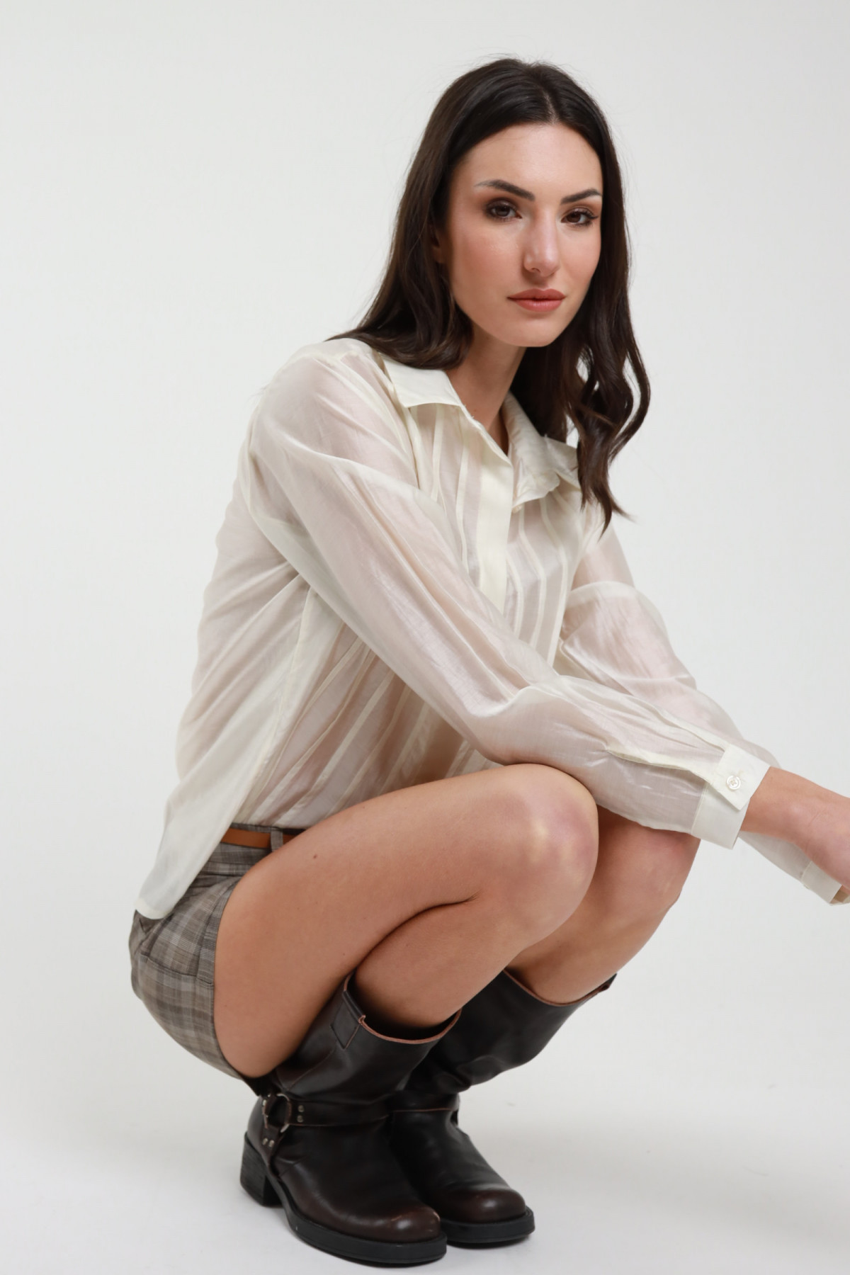 Camicia Georgette in Trasparenza con Dettaglio Pizzo sui Polsi.