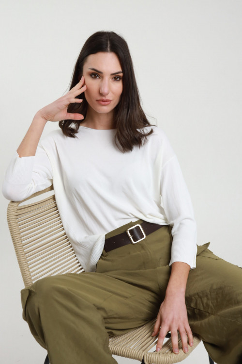 Maglia Girocollo con Maniche 3/4, Asimmetrica con Fronte più Corto.