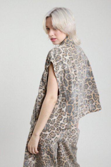 Gilet Over in Denim in Fantasia Animalier e Floreale Sbiadita.