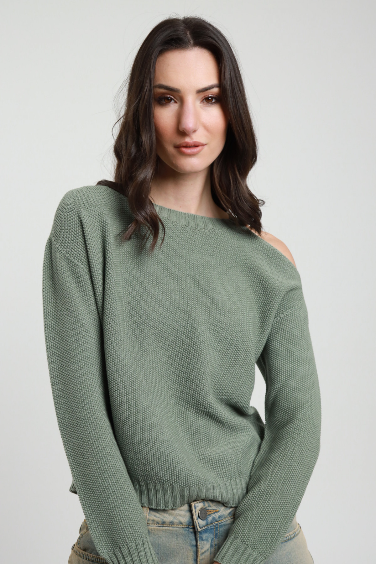 Pull in Maglia di Cotone con Cut-Out sulla Spalla.
