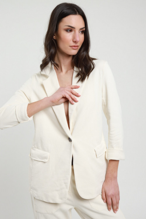 Blazer Monobottone in Felpa, Tasche Filetto Pattina.