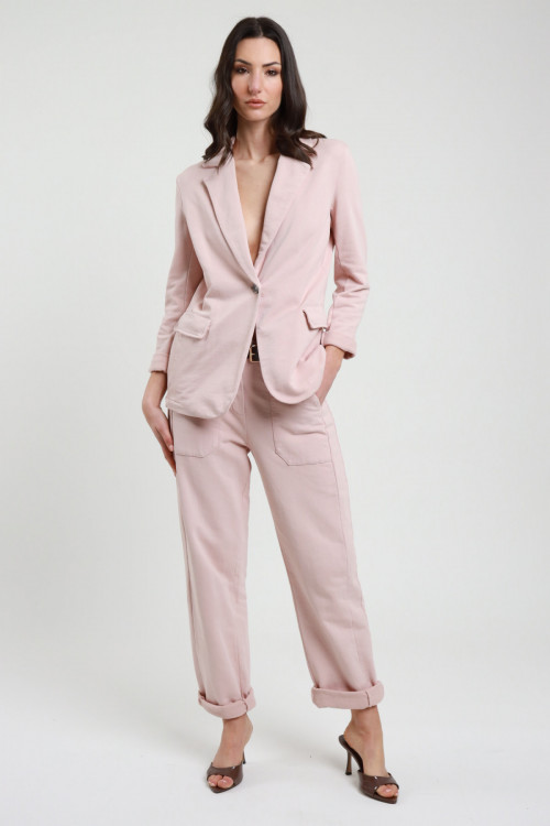 Pantalone Slim in Felpa Elasticizzato, 2 Tasche, con Cintura in Vita.