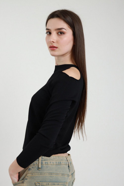 Maglia Girocollo con Cut-Out sulle Spalle, in Viscosa.