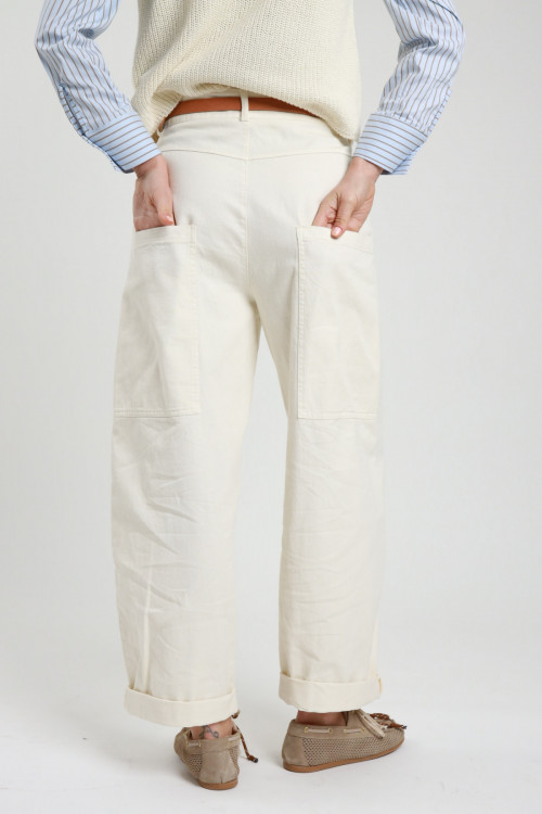 Stellina Bull Denim-Baumwollhose, Ballonmodell mit großen Taschen, Taillengürtel und Sternanhänger. 100 % co