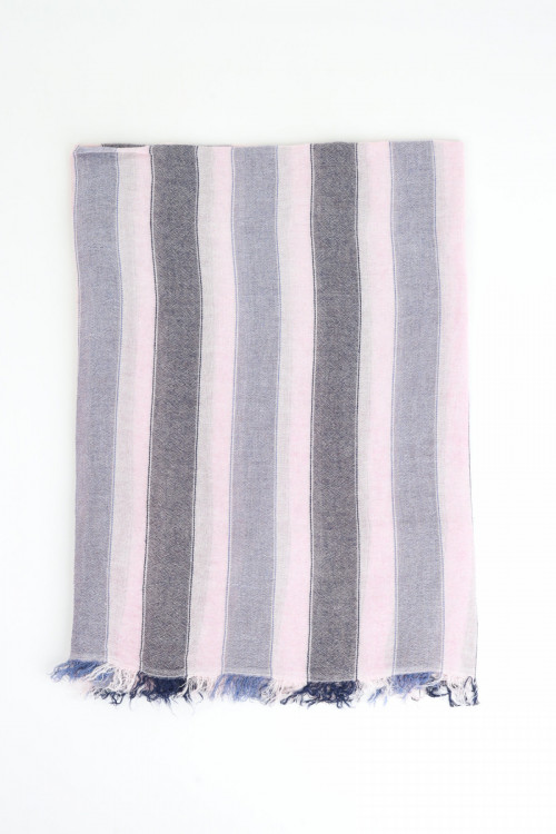 Stola in Viscosa in Fantasia Rigata con Bordi Sfrangiati.
