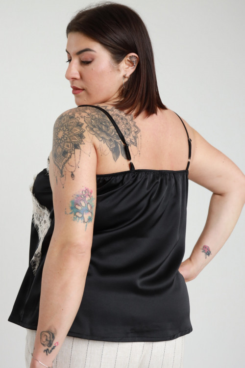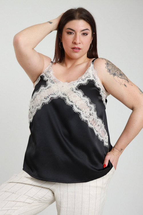 Top Raso con Pizzo sul Fronte, Spalline Sottili Regolabili - Linea Curvy Susy Star.