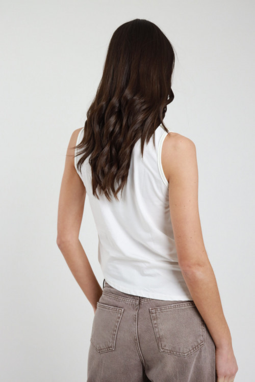 Canotta Canettata Con Scollo Tondo e Spalline Strette, Borchiette In Strass Apllicate. 95%co 5%ea