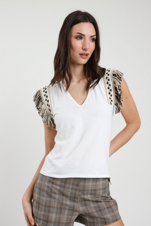 Canotta in Cotone Elasticizzato con Scollo a V e Passamaneria sul Giromanica.