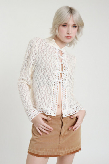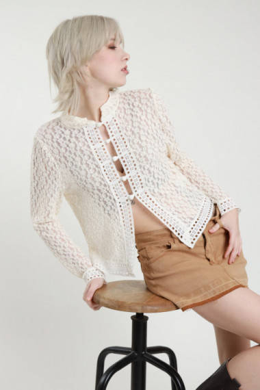 Camicia in Pizzo con Chiusura Frontale con Alamari.