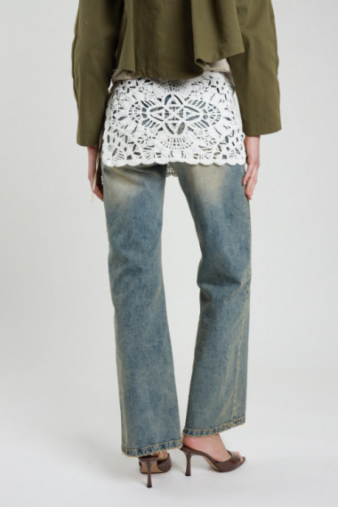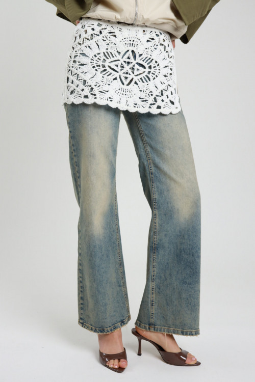 Pantalone Stellina in Cotone Bull Denim, Modello Baloon con Tasconi, Cintura in Vita e Ciondolo Stellina.